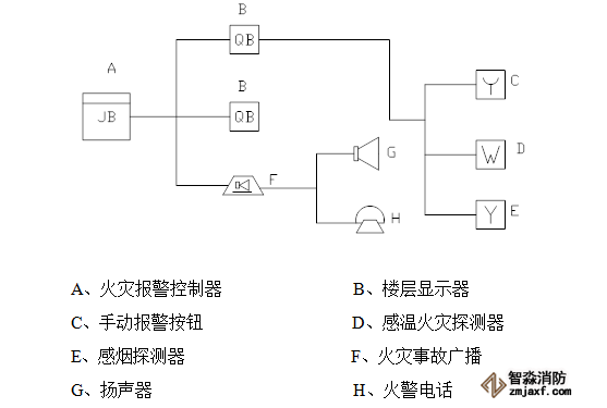 火災(zāi)自動(dòng)報(bào)警系統(tǒng)的基本結(jié)構(gòu)如圖: