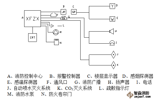 根據(jù)國(guó)家有關(guān)消防法規(guī)的規(guī)定,本系統(tǒng)消防設(shè)施主要由以下系統(tǒng)組成: