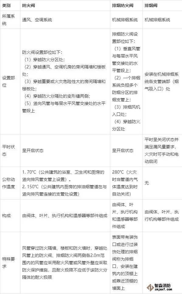 防火閥、排煙防火閥、排煙閥的區(qū)別,看表就知道