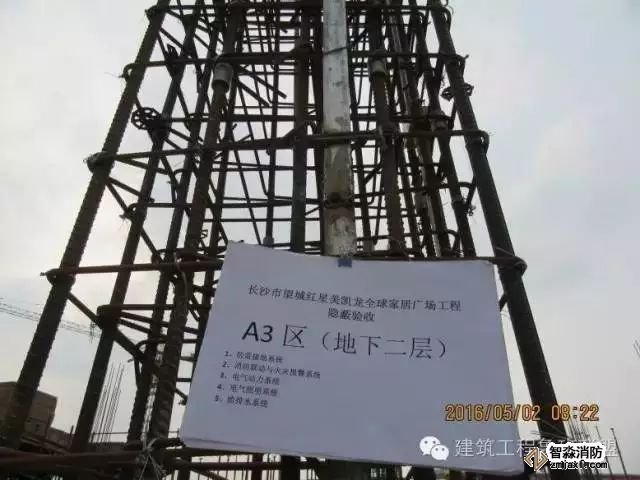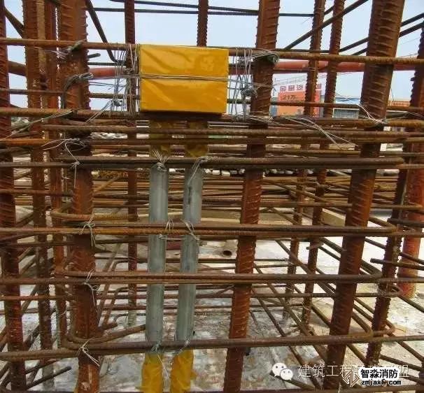 淘汰傳統(tǒng)的預留法如木盒、鐵皮盒、塑料套管,避免跑模、變形等弊端,采用可提式鋼管盒預留法,材料利用廢舊鋼管,制作時,套管高度為250mm,套管管徑比圖紙設計的管徑大兩個等級,在離預留盒上口80mm處焊接一個Φ6圓鋼煨成的提手,以備混凝土達到一定強度后便于拔出,同時在預留盒的底口用鋼板封堵好。 蘇州智淼消防工程安裝公司