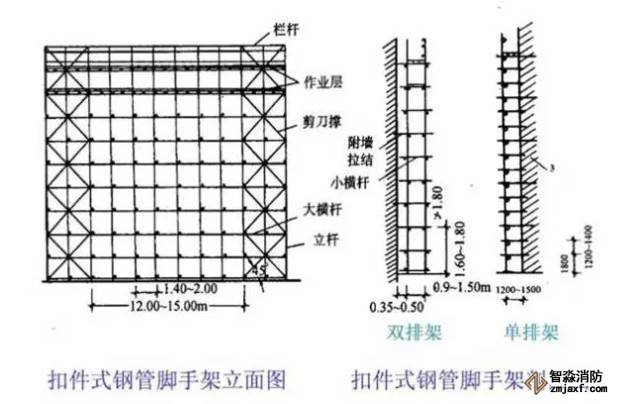 腳手架:是指搭設在建筑物及設備四周墻外邊的腳手架。里腳手架:是指搭設在建筑物內部供各樓層砌筑和清面裝飾用的及設備(容器)內部的腳手架。