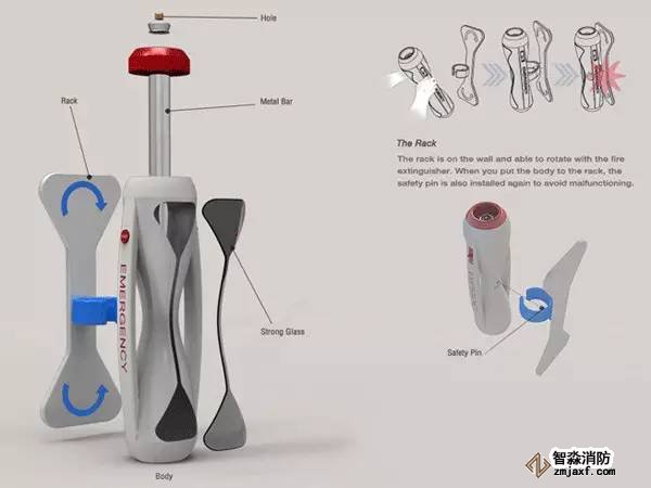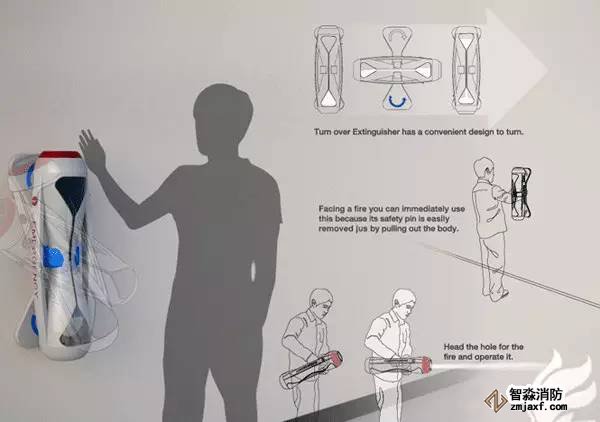 滅火器無論是在家庭還是在公共場所都是必不可少的物品,由于使用幾率不大,所以很少有人會注意到它。說實話,很多人見到這個東西都會緊張,怕操作錯誤,而且現在的滅火器看起來確實不那么易懂。最重要的是,打開滅火器的那幾秒鐘很可能意味著生與死。那么來看看設計師們是怎么來創新它的吧。