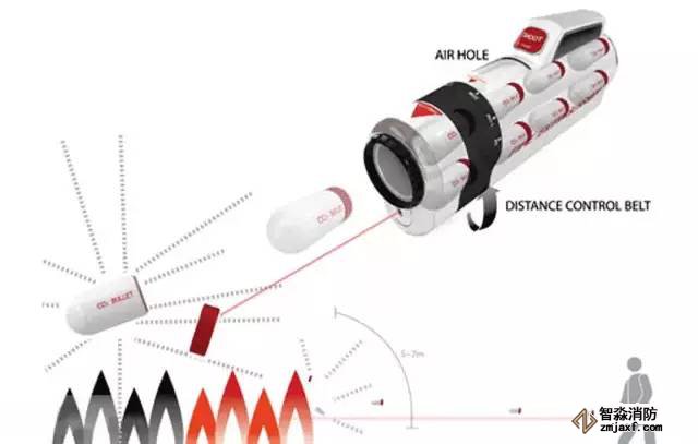 這款滅火器適用于超大型的火災,將滅火物質儲存在了類似于膠囊的小容器中,它借鑒了玩具槍的設計,而每個滅火的小容器都是“子彈”。一旦火災發生時,人們只需抓起“滅火槍”對準火場“開火”即可。這樣不僅有利于滅火物質的迅速散開,而且可以在更遠的距離進行滅火,因此安全系數更高。