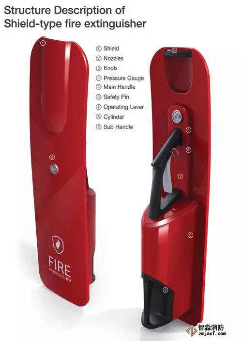 設計師JuneYoungKim和JiMinLee為我們帶來了一款全新的滅火器概念,這款產品相比于傳統的滅火器可謂十分“強悍”,它的盾牌式設計,可以為救火人員在應急滅火時提供一個安全的防護隔絕功能,滅火器瓶體的背嵌設計同時合理地平衡了滅火過程的雙手用力。