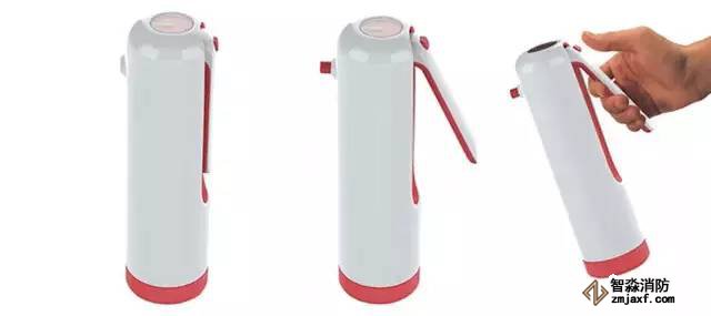 下面兩款都是為廚房專門設計的,廚房是發生火災的高發區,所以在廚房設置小型滅火器也是必要的。當然外表的設計考慮到了廚房油污多,將之設計成簡單的形態也是為了便于清潔,并且在產品的手握處下方也巧妙的處理成了防滑的材質。