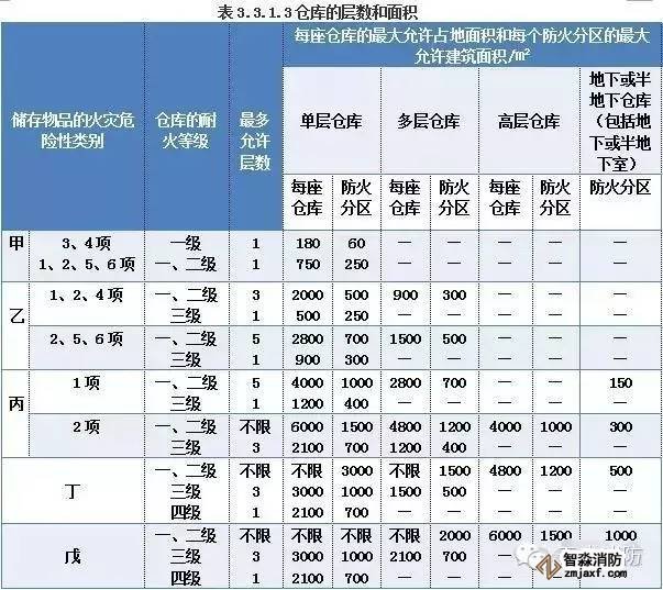 庫房每個防火墻間面積及最大允許占地面積應符合表 3.3.1.3 的要求。 在進行防火分區時,應注意以下幾點:
