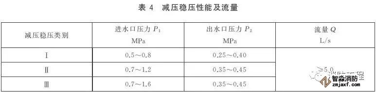 減壓穩(wěn)壓型室內(nèi)消火栓按6.13.2的規(guī)定進行試驗,其穩(wěn)壓性能及流量應符合表4的規(guī)定,且在試驗的升壓及降壓過程中不應出現(xiàn)壓力震蕩現(xiàn)象。