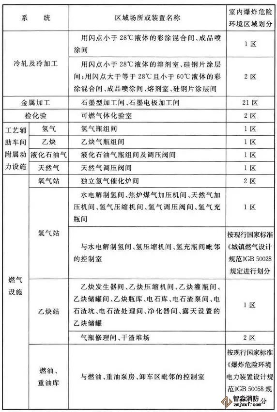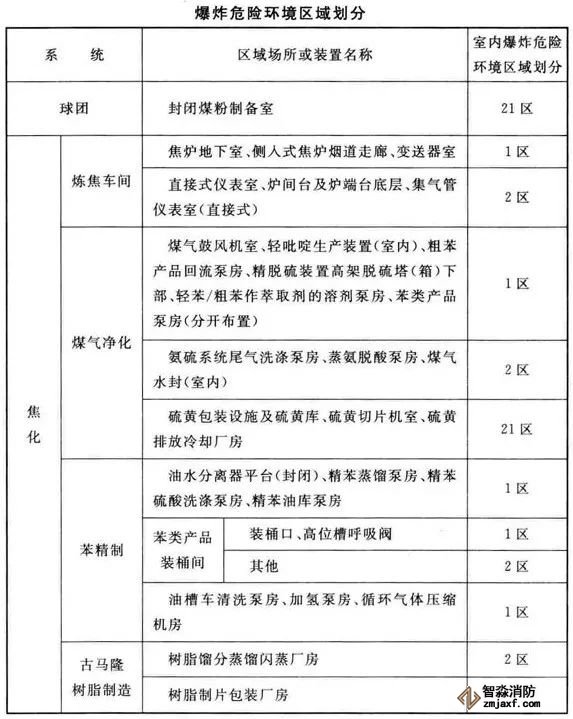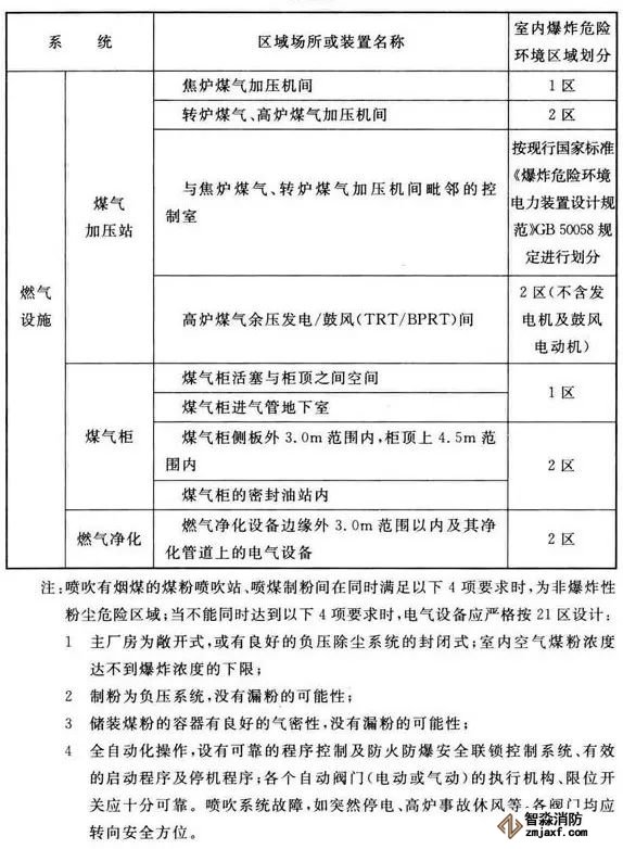 3、可能散發(fā)可燃氣體、可燃蒸氣的煤氣凈化系統(tǒng)的鼓冷、脫硫、粗苯、油庫,苯精制,焦爐地下室,煤氣燒嘴操作平臺等工藝裝置區(qū)和儲運區(qū)等,在其爆炸危險環(huán)境2區(qū)內(nèi)以及附加2區(qū)內(nèi)(具體如下表爆炸危險環(huán)境區(qū)域劃分),應設置可燃氣體探測報警系統(tǒng)。