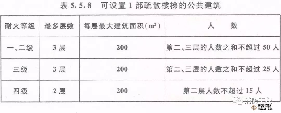 5、除兒童活動場所以及托兒所、幼兒園的兒童用房外,符合《建筑設計防火規范》表 5.5.8 規定的公共建筑,可以設置 1 個安全出口。(5.5.8)