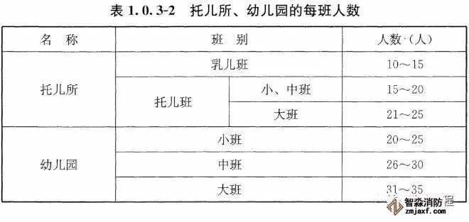 7、關于前述“大、中型幼兒園”的概念,可參照《托兒所、幼兒園建筑設計規范》要求:幼兒園的規模應符合表1.0.3-1的規定,托兒所、幼兒園的每班人數宜符合表1.0.3-2的規定。