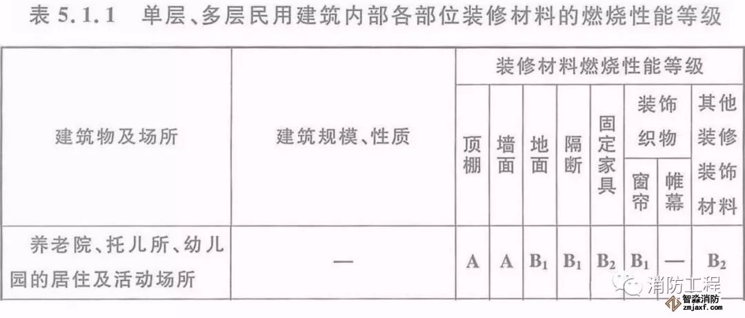 1、當設置在單層、多層民用建筑時,內部各部位裝修材料的燃燒性能等級,不應低于《建筑內部裝修設計防火規范》5.1.1的規定。