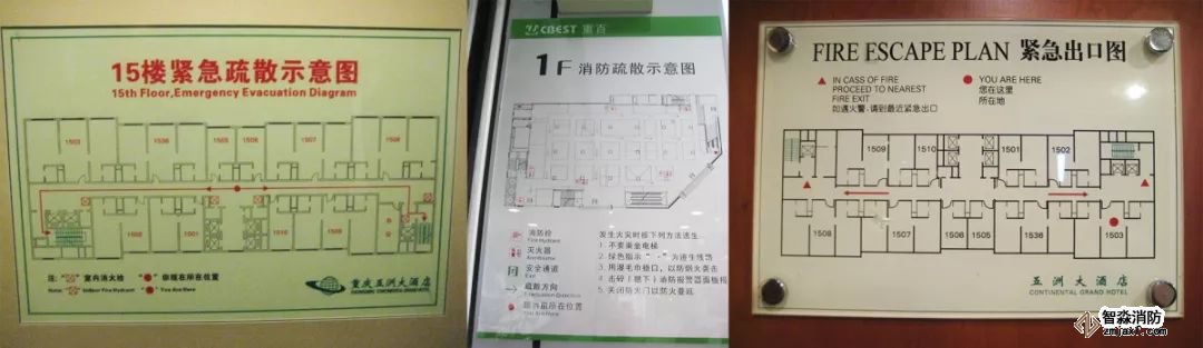 設置要求:1、人員密集場所在各樓層醒目位置應樓層疏散示意圖。2、賓館、餐廳、娛樂場所等包房門后應設置樓層疏散示意圖。