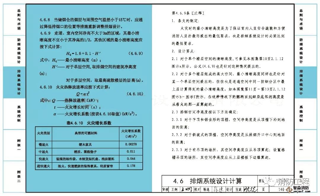 8、第143頁“第4.6.12條[算例1]”:一是字體小了;二是結合《自動噴水滅火系統(tǒng)設計規(guī)范》GB50084-2017,將前廳排煙計算從“有噴淋”改為“無噴淋”。