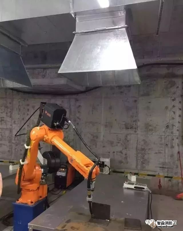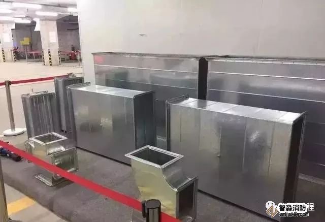 排煙管道安裝,法蘭采用倒角法蘭,美觀實(shí)用,標(biāo)識(shí)清楚。