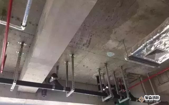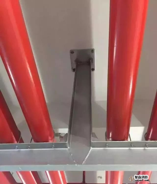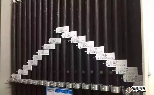 噴淋支管橫平豎直,標(biāo)識(shí)清楚、支架布置間距合理。