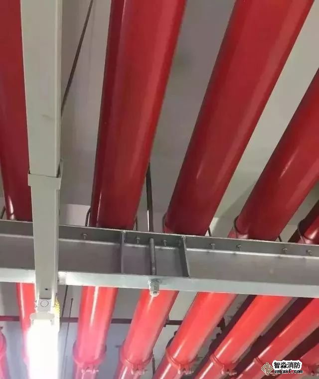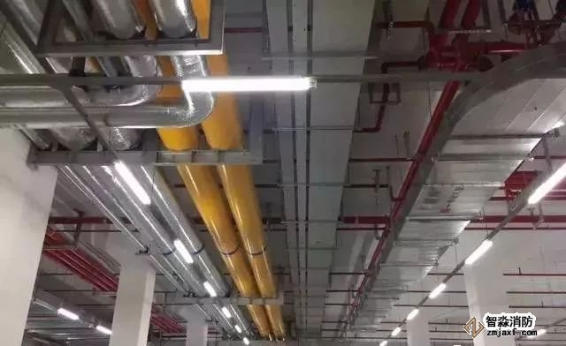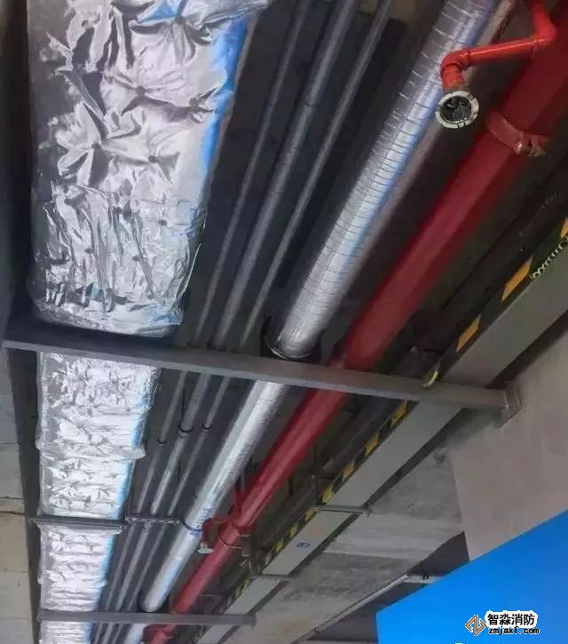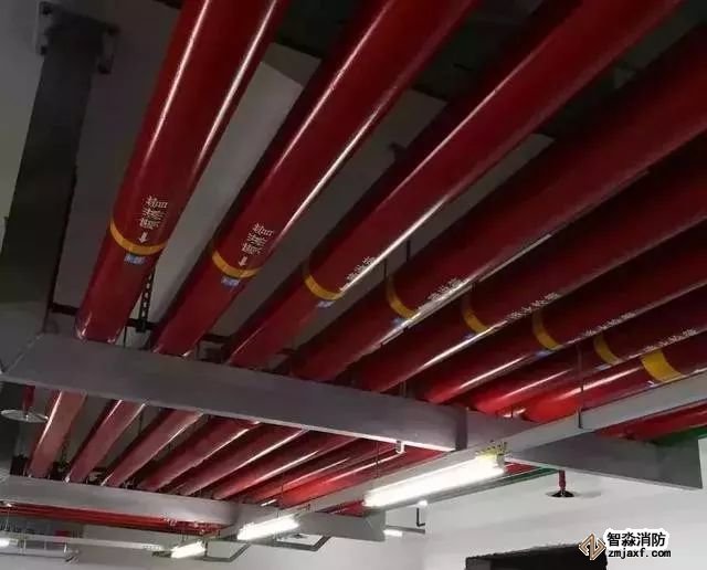 消防噴淋管道間距一致,標(biāo)識(shí)清楚、成排成線。