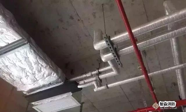 空調(diào)水管道,坡度正確,支架布置合理,保溫整齊美觀。