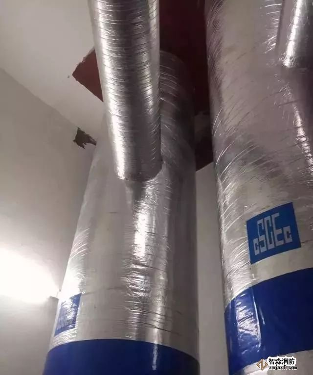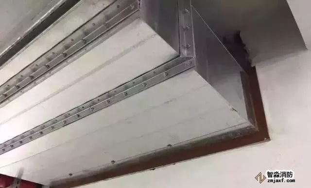 風(fēng)管穿墻,防火泥封堵到位,界面清楚。