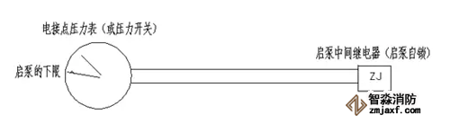 壓差啟泵方式,適用于穩高壓系統,其工作原理是在消防、噴淋系統止回閥后的主管網上增加一個電接點壓力表,正常系統有穩壓系統穩壓,當管網的壓力下降很快(穩壓系統的壓力無法補償),到達電接點設置的壓力值時消防、噴淋的主泵就會啟泵。缺點:管網滲漏嚴重或破裂時就會啟動主泵,壓力表損害則不會啟泵。
