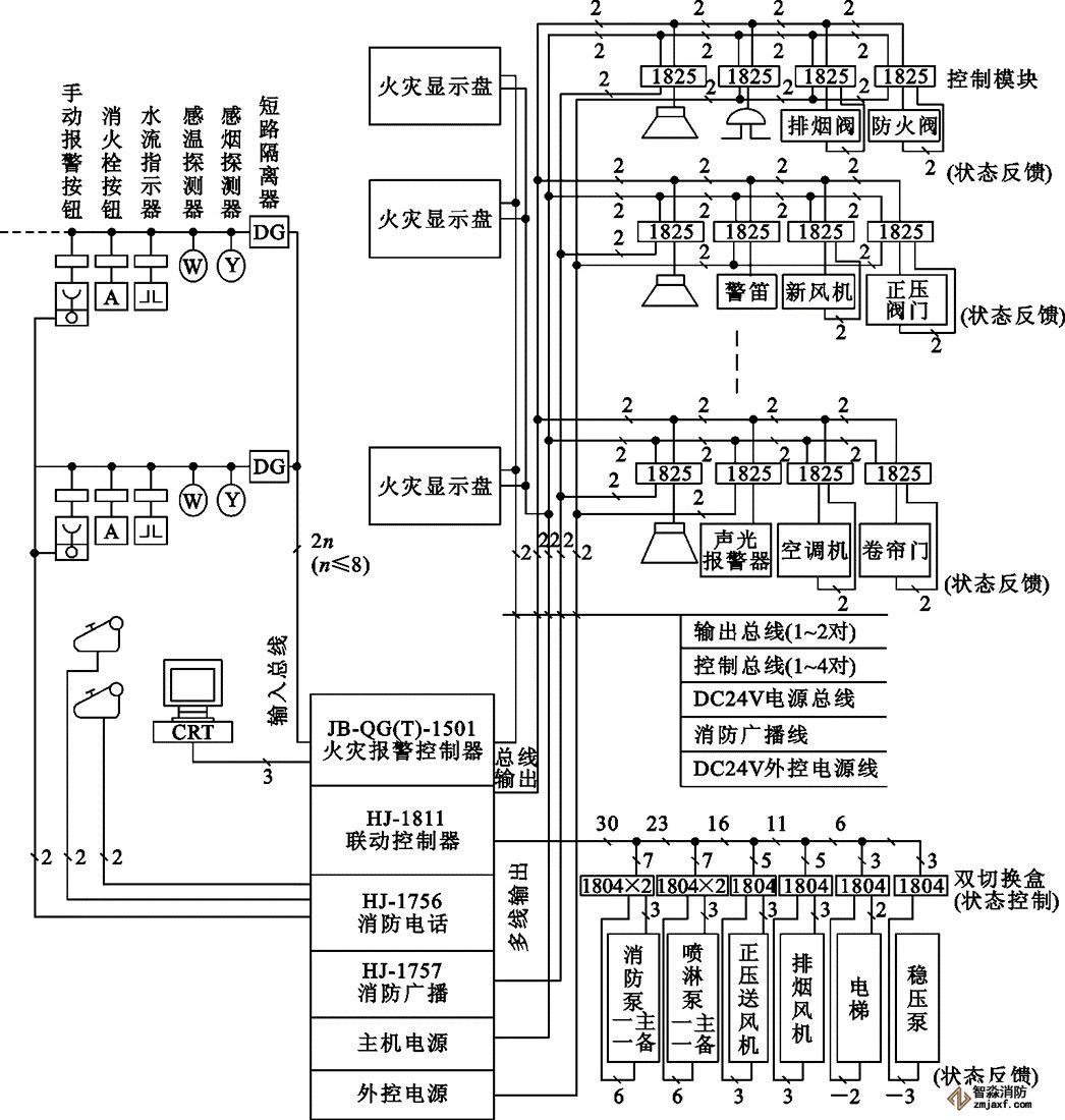 該系統(tǒng)由滅火劑瓶組、加壓氣體瓶組、驅(qū)動(dòng)氣體瓶組(可選)、單向閥、選擇閥、減壓裝置、驅(qū)動(dòng)裝置、集流管、連接管、噴頭、信號反饋裝置、安全泄放裝置、控制盤、檢漏裝置、管道管件及吊鉤支架等組成。