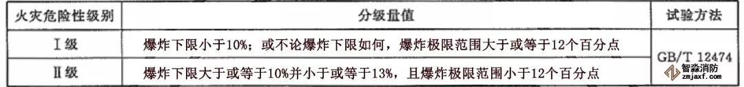 易燃氣體的火災危險性分級方法見下表: