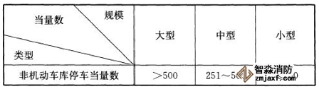 注1:對(duì)于非機(jī)動(dòng)車庫來講,主要考慮以自行車作為主要停駛車輛,因此以自行車為標(biāo)準(zhǔn)當(dāng)量作為劃分依據(jù),其他類型非機(jī)動(dòng)車輛如三輪車、電動(dòng)自行車、機(jī)動(dòng)輪椅車等停放在庫中時(shí)應(yīng)按相應(yīng)當(dāng)量換算系數(shù)進(jìn)行折算。