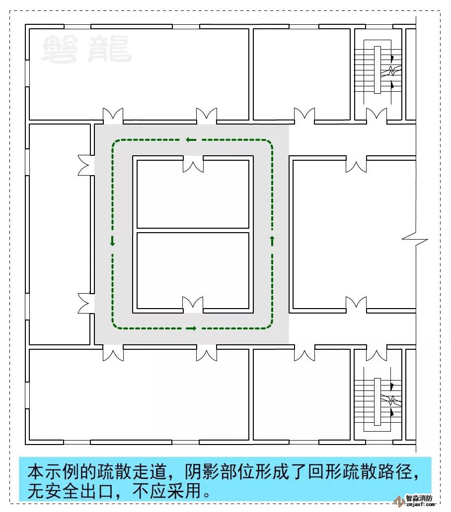 4、沒有安全出口的回形(環形)疏散路線,不應采用。