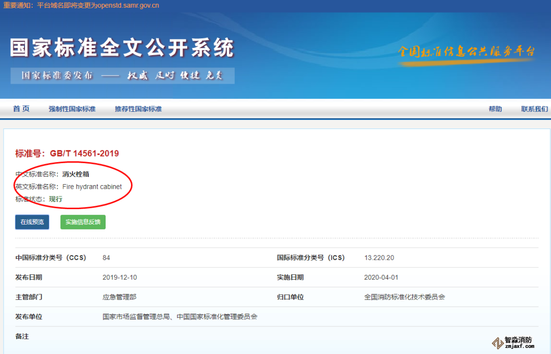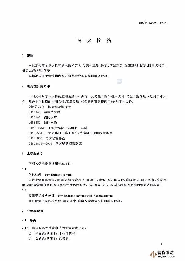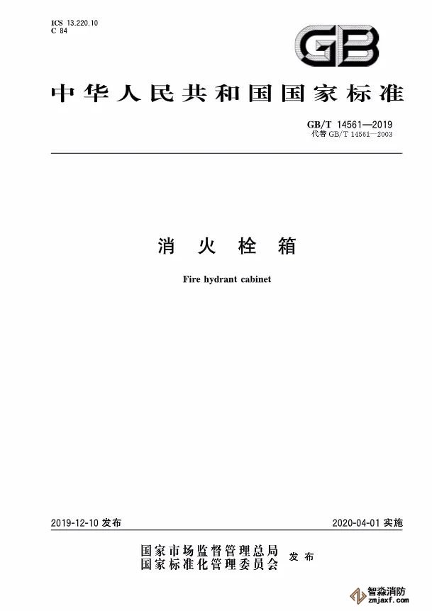 《消火栓箱》 GB/T 14561-2019 已于2020-04-01實施。本標準代替GB/T14561-2003《消火栓箱》。