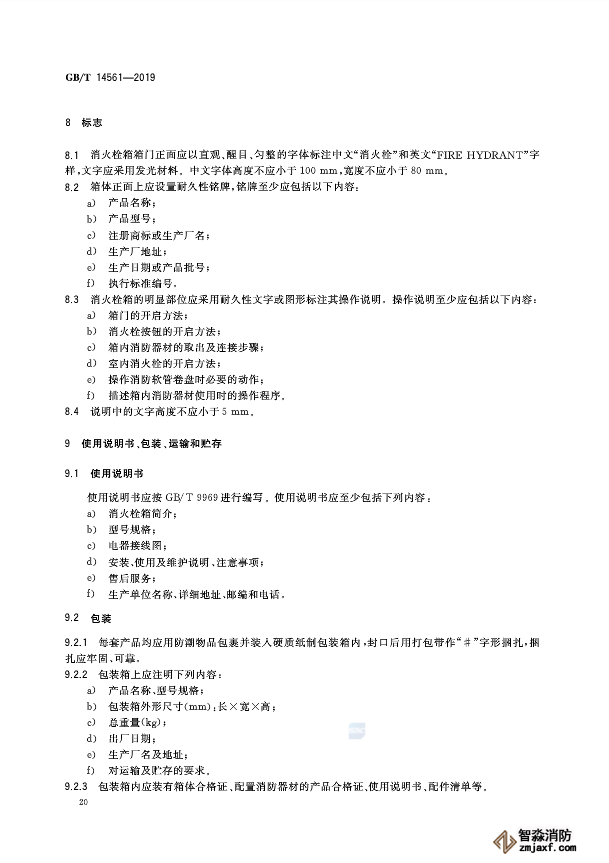 8.1 消火栓箱箱門正面應以直觀、醒目、勻整的字體標注中文“消火栓”和英文“FIRE HYDRANT”字樣,文字應采用發光材料。中文字體高度不應小于100mm,寬度不應小于80mm。