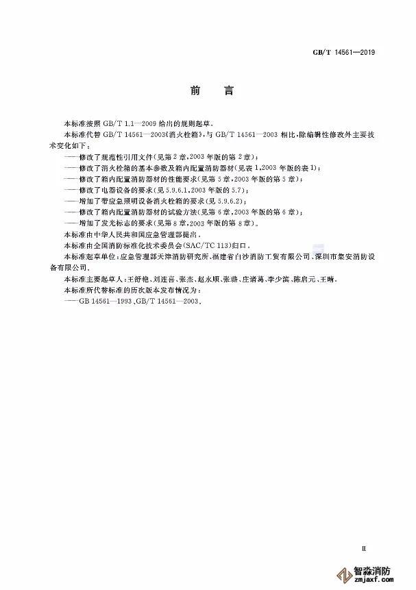 2. 修改了箱內配置消防器材的性能要求(見第5章,2003年版的第5章)。