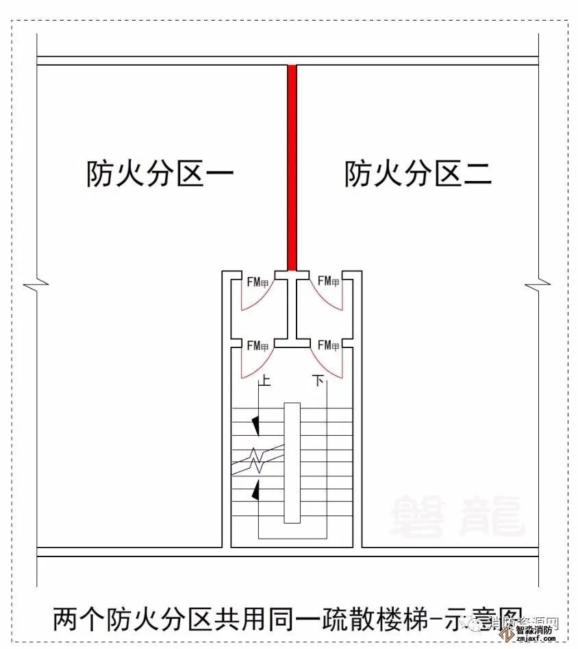 5、三個及以上防火分區不得共用同一部疏散樓梯。