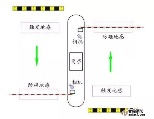 停車場車牌識別系統(tǒng)安裝在地庫坡道上面水平路面上,出口的停車場車牌識別系統(tǒng)安裝在地庫坡道下面的水平地面上。能夠防止當一體機無法識別車牌,造成道閘不能抬桿時,車輛只能停在地庫坡道上的疑問。