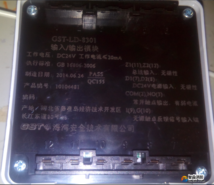 GST-LD-8301模塊的外形尺寸及結(jié)構(gòu)與GST-LD-8319輸入模塊相同,安裝方法也相同,其對(duì)外端子示意圖如下: