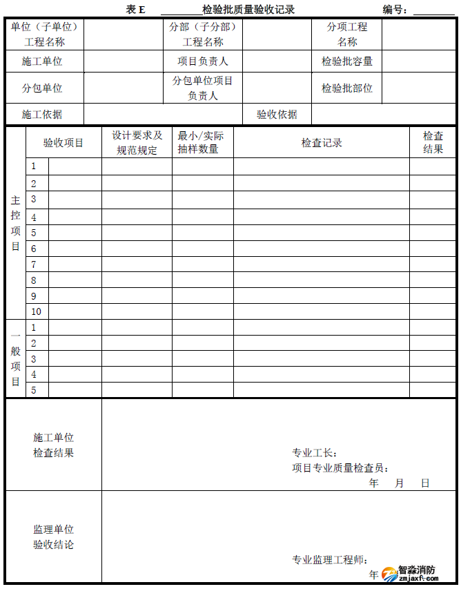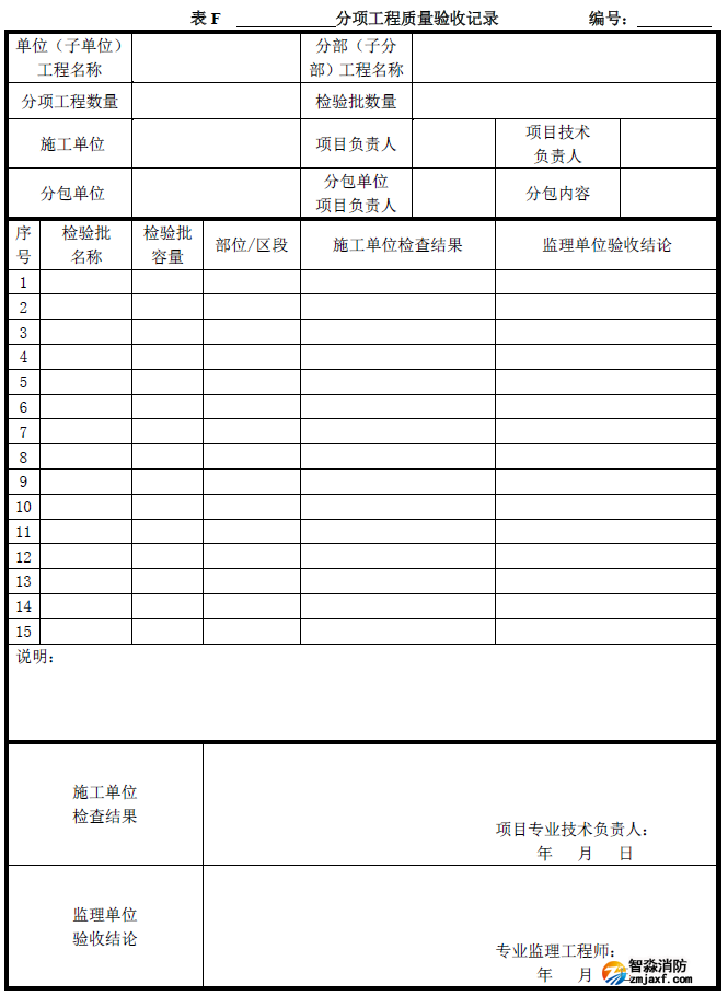 分項(xiàng)工程質(zhì)量驗(yàn)收記錄可按《建筑工程施工質(zhì)量驗(yàn)收統(tǒng)一標(biāo)準(zhǔn)》附錄F填寫。