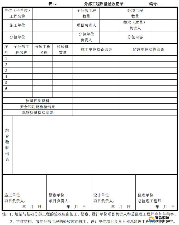 分部工程質(zhì)量驗(yàn)收記錄可按《建筑工程施工質(zhì)量驗(yàn)收統(tǒng)一標(biāo)準(zhǔn)》附錄G填寫。