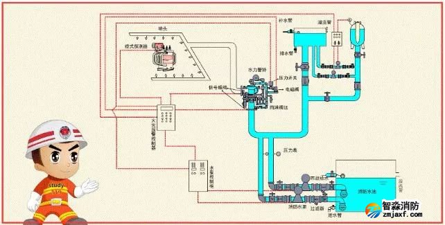 配置供給泡沫混合液的設備后,組成既可噴水又可以噴泡沫的自動噴水-泡沫聯(lián)用系統(tǒng)。