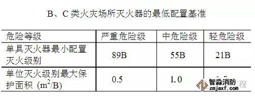 新規(guī)范規(guī)定:B、C類火災配置場所的最低配置基準是單具滅火器最小配置滅火級別為: 嚴重危險級為89B, 中危險級為55B, 輕危險級為21B,;