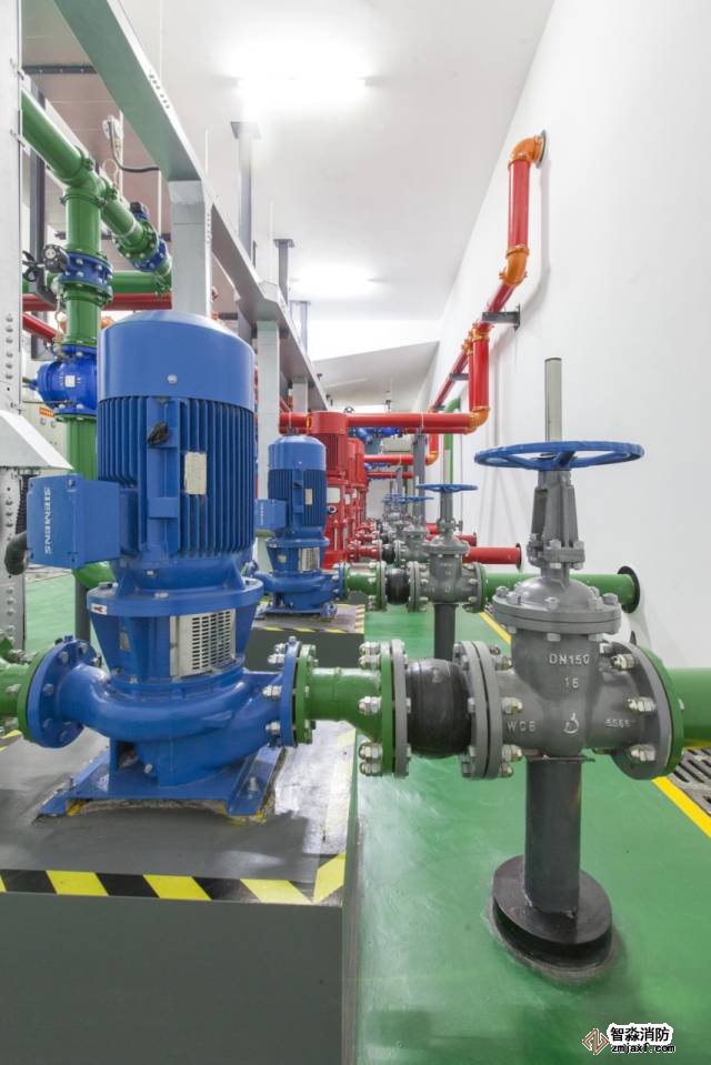 消防泵房閥門高度一致,油漆涂刷均勻,管道成排成線。