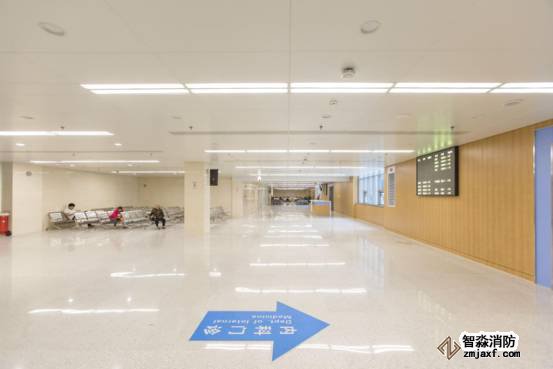 診室候診區(qū)燈具、噴頭、風口、煙感排布精細美觀,橫成排、豎成行、斜成線,錯落有致。