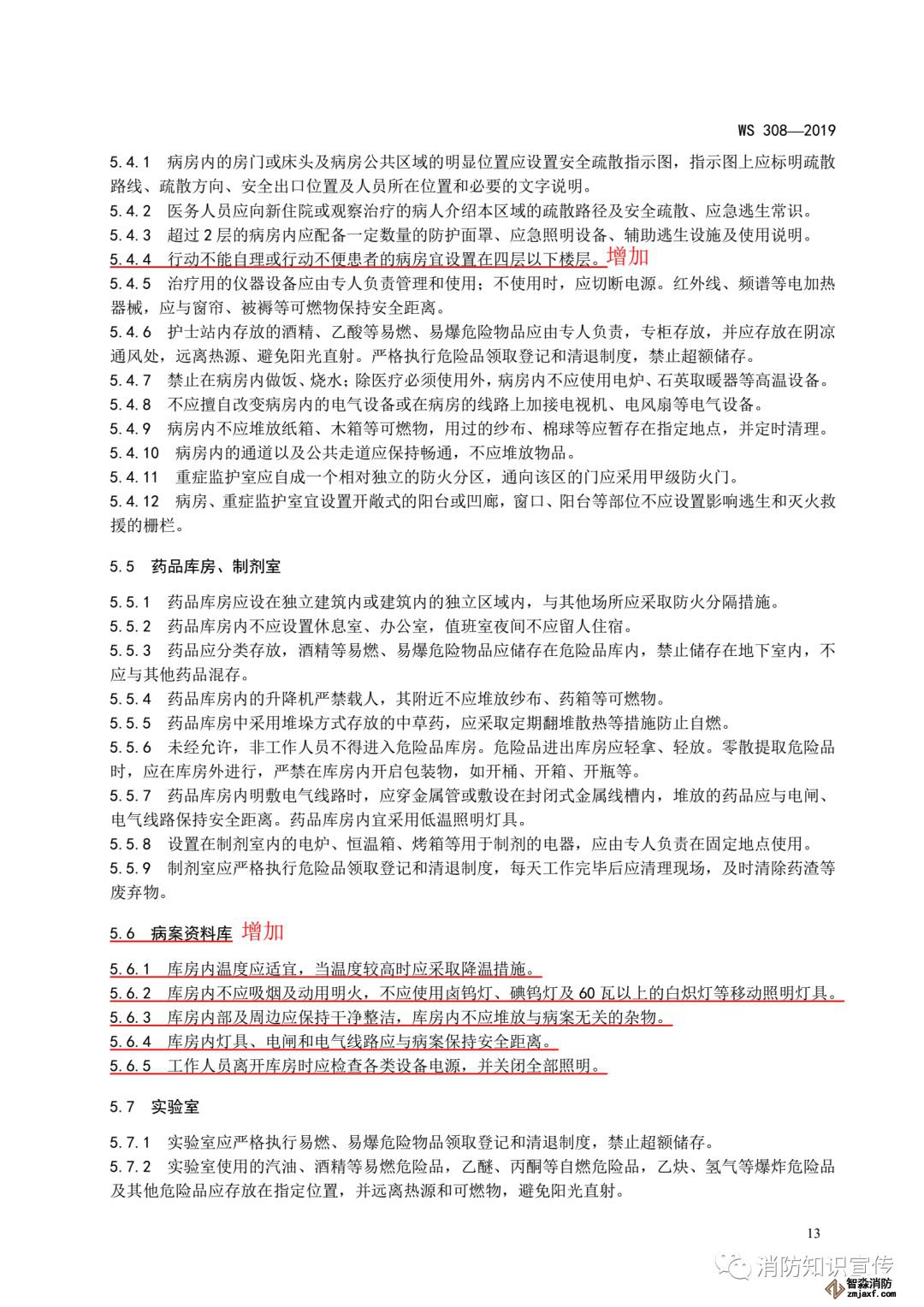 ——增加了屬于高危單位的醫(yī)療機(jī)構(gòu)開展消防安全評估的要求(見4.1.14);