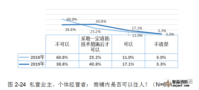 雖然群眾對這一常識有一定的認知,但其知曉率(79.6%)比2018年(86.0%)下降了6.4個百分點!說明私營業主、個體經營者的消防安全意識有所松懈!