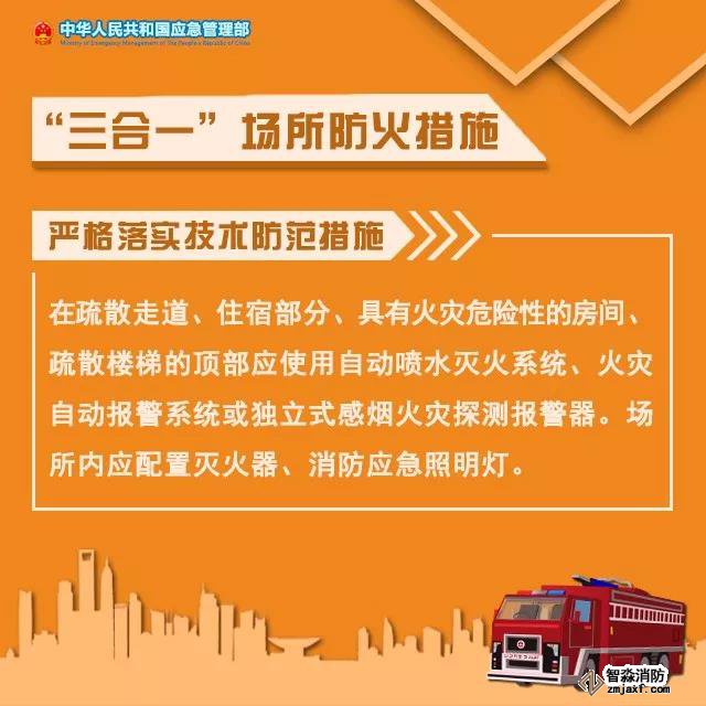 “三合一”場所指生產(chǎn)、住宿和經(jīng)營在一起的小場所,由于生活用火用電和倉儲(chǔ)、經(jīng)營混雜,大多較簡陋、擁擠、可燃物多,極易引發(fā)火災(zāi)。該如何預(yù)防火災(zāi)事故發(fā)生?