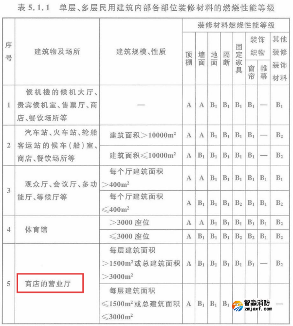 附《建筑內(nèi)部裝修設(shè)計(jì)防火規(guī)范》GB 50222-2017有關(guān)商店建筑裝修材料燃燒性能標(biāo)準(zhǔn)要求: