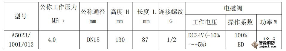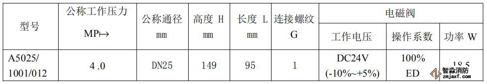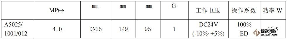 表1-10補水電磁閥主要技術參數