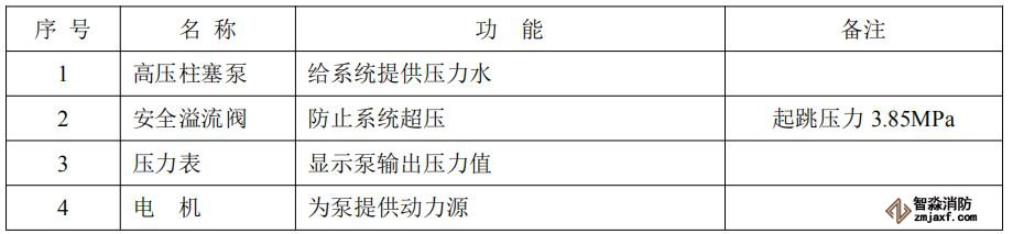 泵式細水霧自動滅火系統各主要部件名稱及其功能