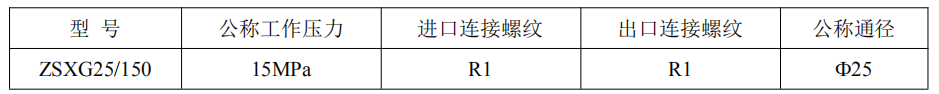 旁通閥主要技術參數