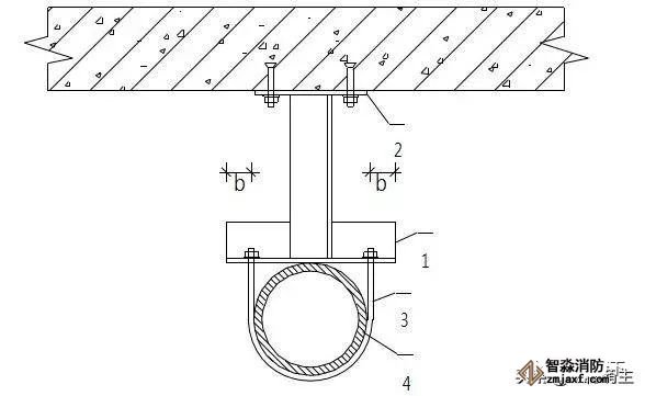 1.支架橫擔 2.鍍鋅螺桿 3.管碼 4.管道 5.頂爆螺栓 6.緊固螺栓