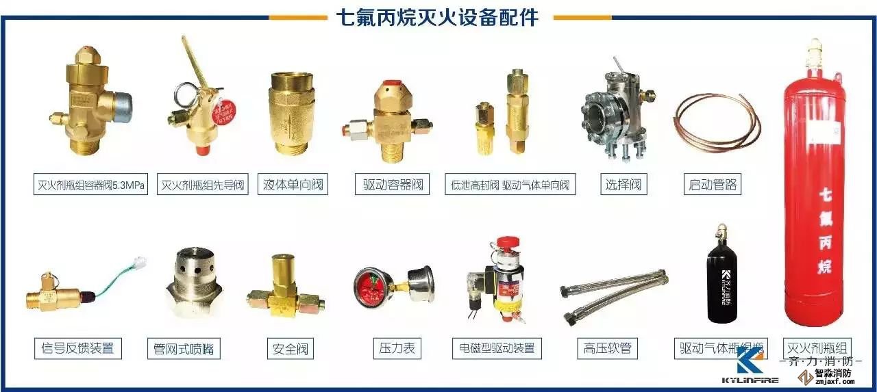 七氟丙烷滅火設備需要設置專用的設備間,用一套或一套以上的貯存裝置保護一個或一個以上的保護區(總保護區數量≤8個,總保護區體積≤3600m³),使用管網將滅火劑輸送到保護區的系統。