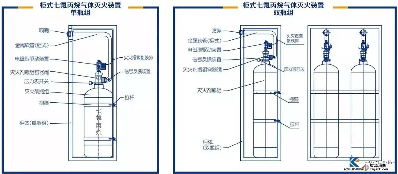 下面小編以本公司生產的柜式七氟丙烷氣體滅火裝置和七氟丙烷滅火設備為例,和大家一起了解七氟丙烷氣體滅火系統。
