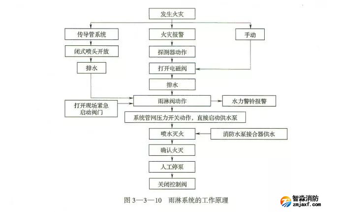 ▍組成:火災探測傳動控制系統、自動控制成組作用閥門系統、帶開式噴頭的自動噴水滅火系統。